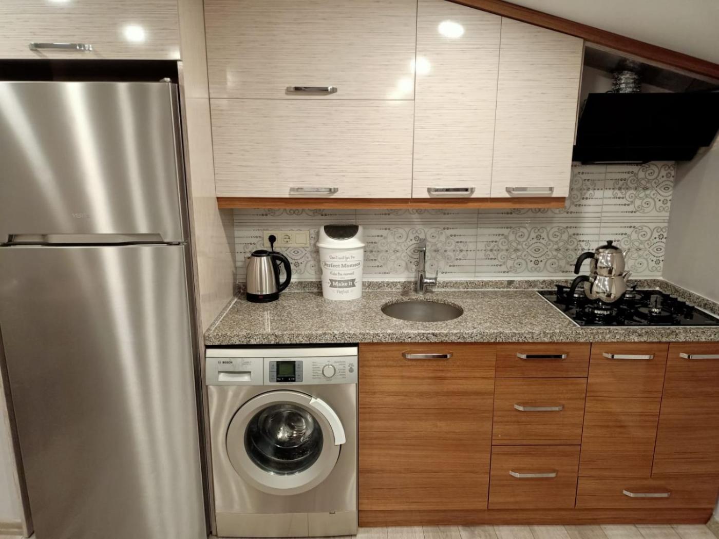 Deluxe Quadruple Room. The fully equipped kitchen has a stovetop, a refrigerator, kitchenware and a tea and coffee maker. The spacious quadruple room features a washing machine, soundproof walls, a balcony with garden views as well as a private bathroom boasting a walk-in shower. The unit has 3 beds. ;