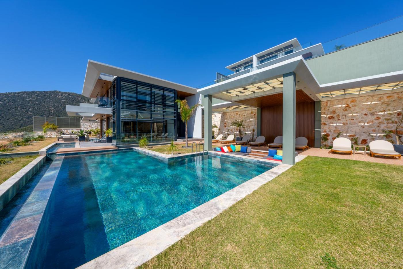 Villa. Guests will have a special experience as this villa provides a pool with a view and a sauna. Boasting a private entrance, this air-conditioned villa includes 2 living rooms, 4 separate bedrooms and 5 bathrooms with a shower and a hairdryer. Guests will find a stovetop, a refrigerator, a dishwasher and kitchenware in the fully equipped kitchen. The villa also features a barbecue. The spacious villa offers a flat-screen TV with cable channels, a washing machine, a minibar, a tea and coffee maker as well as sea views. The unit has 4 beds.