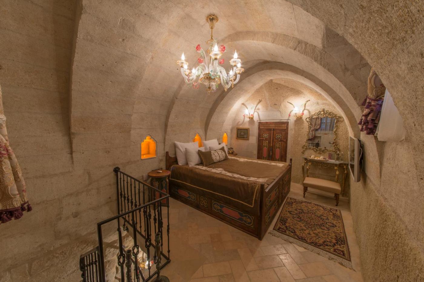 Deluxe Cave Room. Guests will have a special experience as the double room features a fireplace. The spacious double room provides a minibar, a tea and coffee maker, a wardrobe, a flat-screen TV with cable channels, as well as city views. The unit offers 1 bed. ;